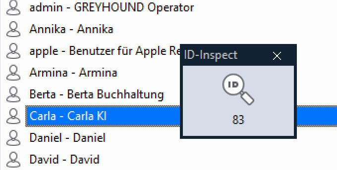 Unter Einstellungen > Benutzer ist entweder mittels ID-Inspect (Administration > ID-Inspect) die ID eines bereits bestehenden Benutzer zu ermitteln oder alternativ erst ein Benutzer anzulegen, bevor seine ID ermittelt wird: